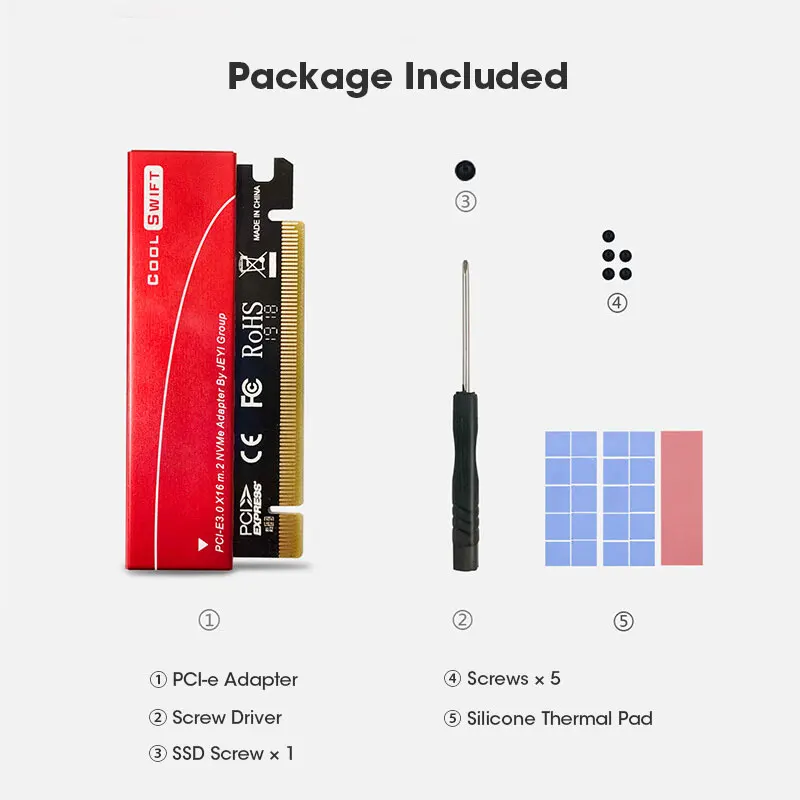 ⭐Package: 3 thermal compound pads, 1 PCI-E adapter, 1 screw driver