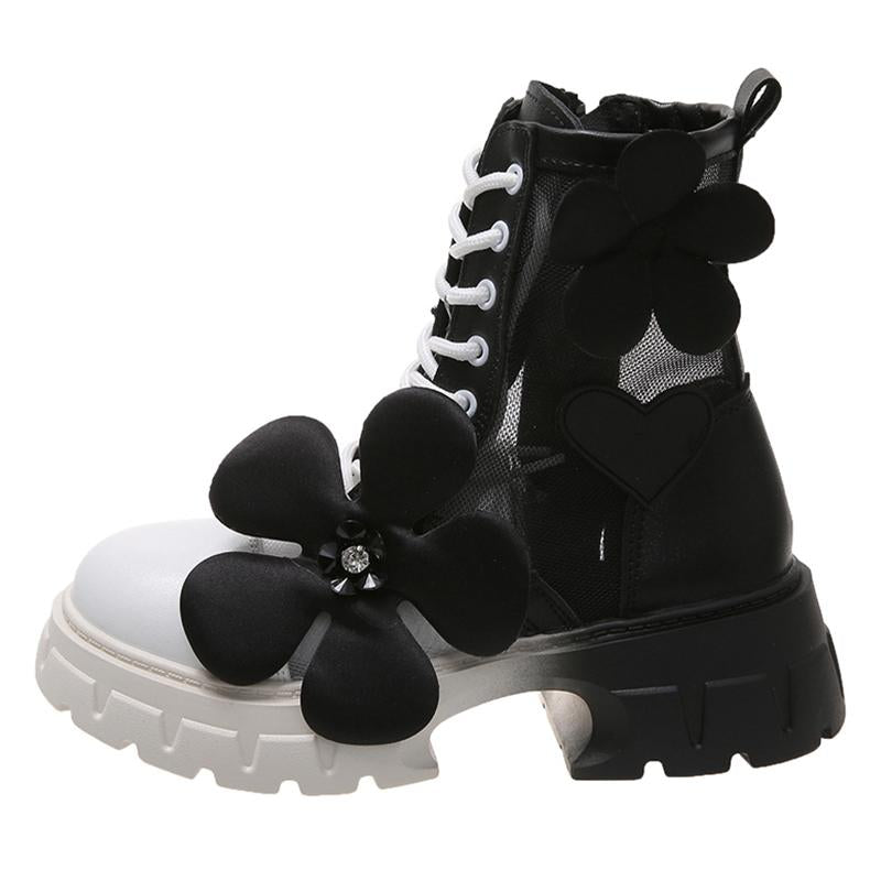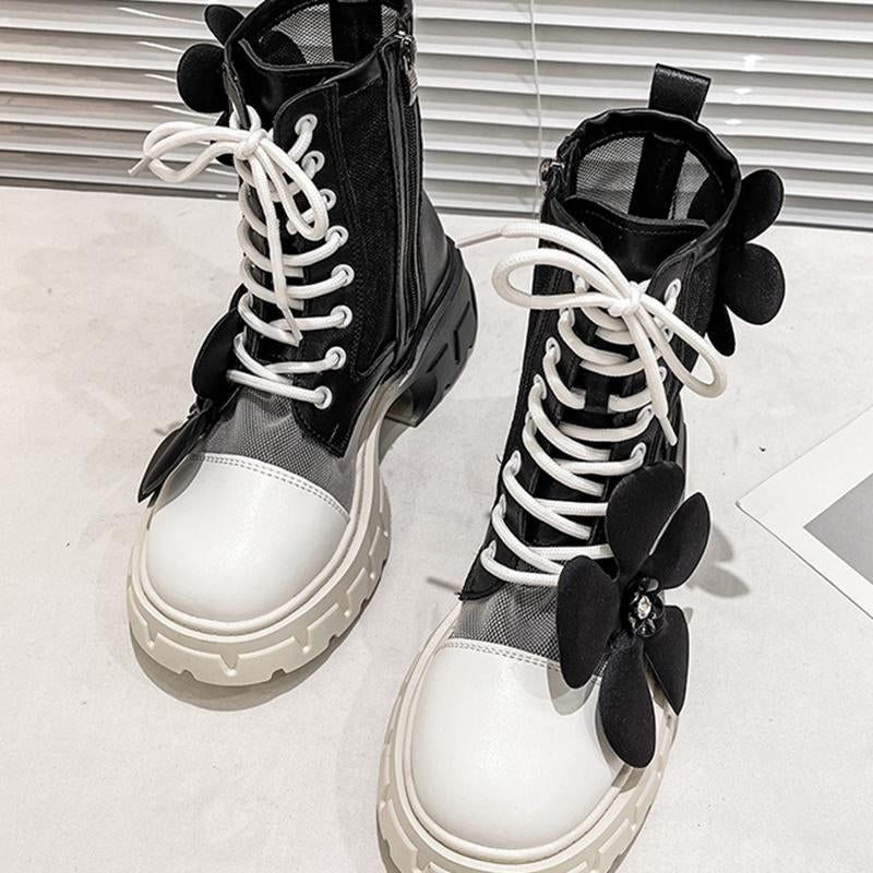 Brand Bow Chelsea Shoes Autumn Mesh Chunky Motorcycle-BS01063-Veeddydropshipping