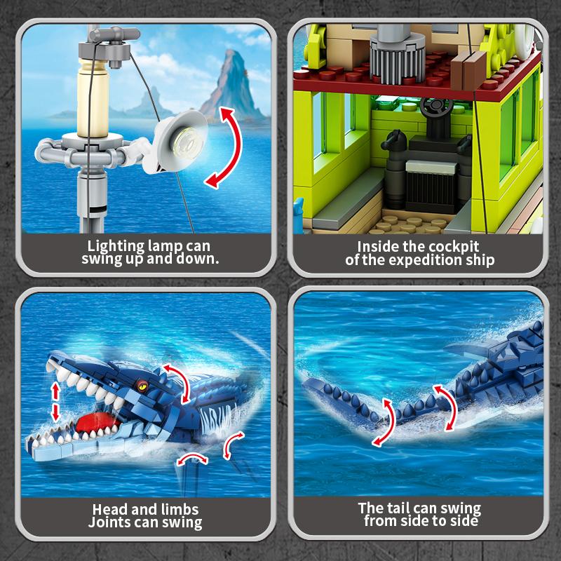 Building Blocks Dinosaur Ideas MOC Animal Escape Mosasaurus Ocean-TB01487-Veeddydropshipping