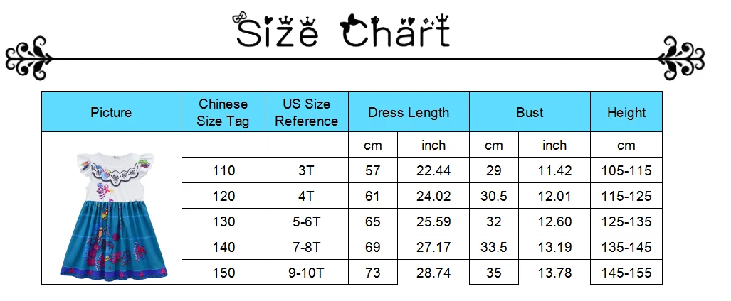 Encanto Frozen Disney Princess Dress Girl Mirabel Isabela Elsa Anna-TB00840-Veeddydropshipping