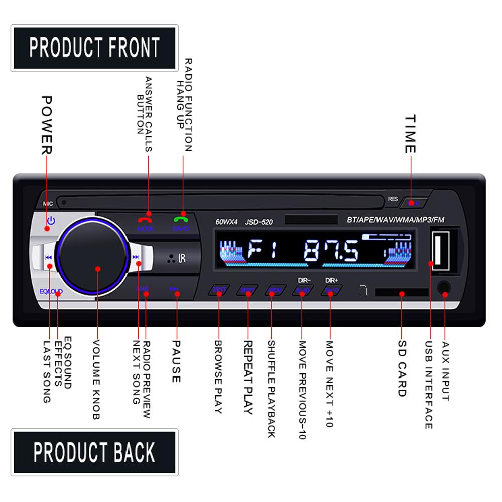 JSD-520 Car Radio In Dash 1 Din Tape Recorder MP3 Player FM Audio-AM00639-Veeddydropshipping