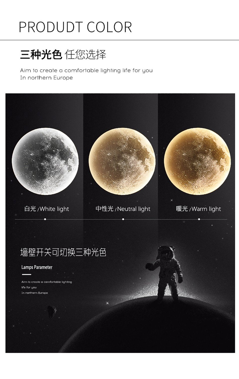 Color Temperature: White lights/Warm lights/Dimming