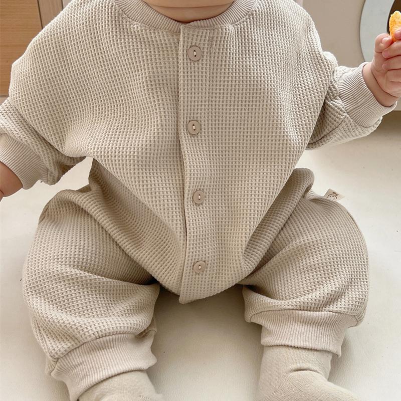 Newborn Baby Boy Waffle Jumpsuit Spring Autumn Girl Solid-TB00306-Veeddydropshipping