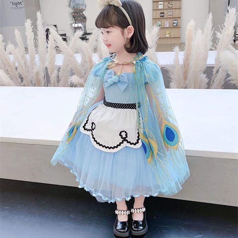 Peacock Girl Princess Party Costume Tulle Cape Cloaks Halloween Dress-TB00831-Veeddydropshipping
