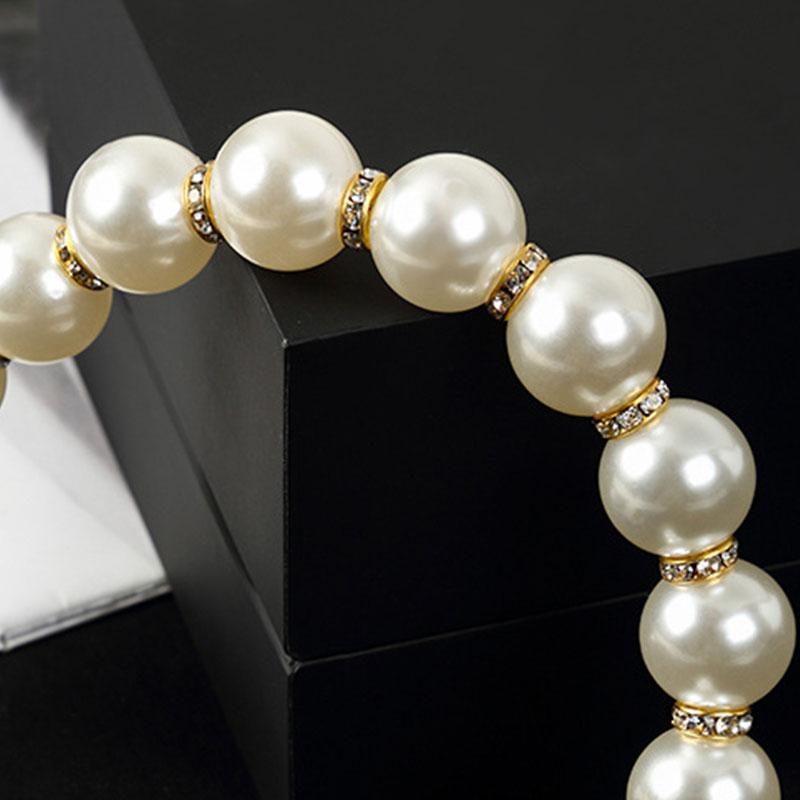 Imitation pearl chain,the material is optimized,and the polishing process is not easy to fade.Smooth and round,delicate color.The pearls are round and plump,and feel comfortable.The metal buckle is strong and durable.