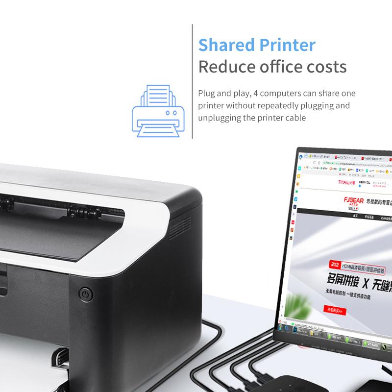1. 4 USB ports for input and 4 USB ports for output, which can share multiple USB devices such as printers, mice, and keyboards.