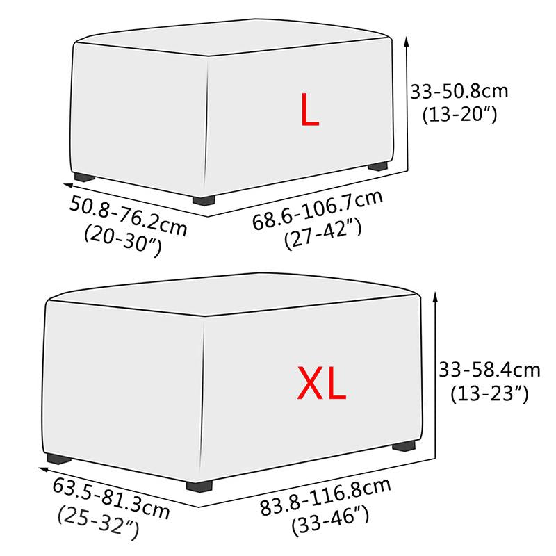 / X-Large fits most ottoman with Length 83.8-116.8cm/33 - 46 inches, Width 63.5-81.3cm/25-32 inches, Height 33-58.4cm/13-23 inches.