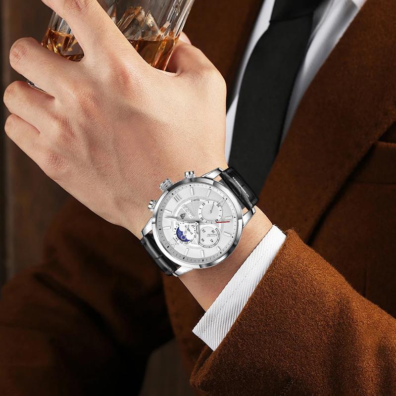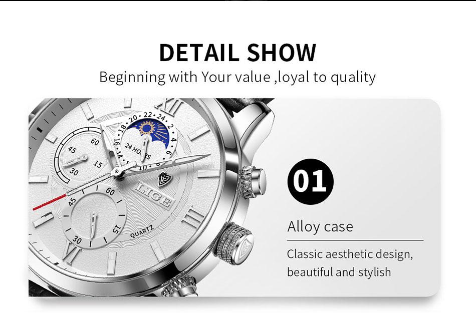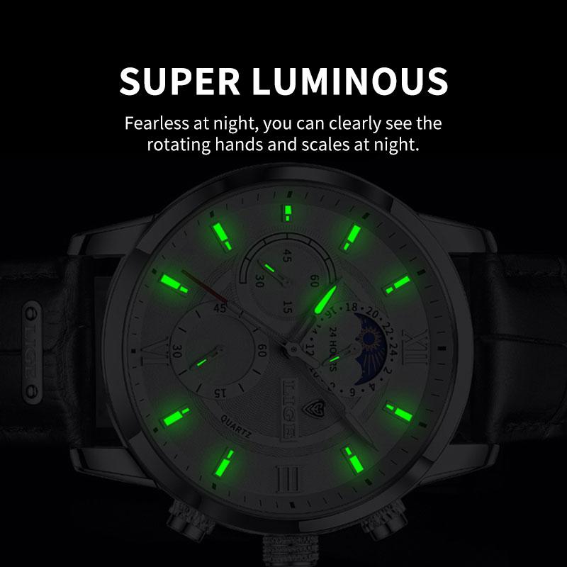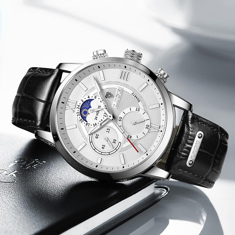 lige watch men : Leather strap watch
