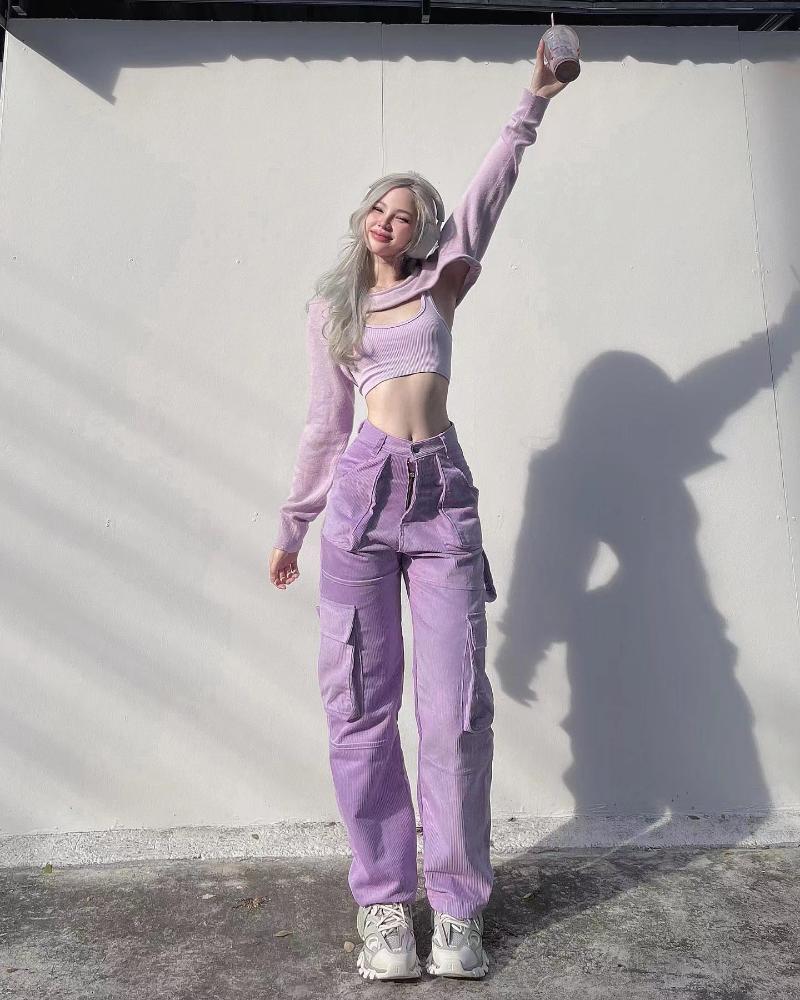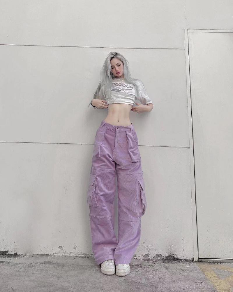 woman sport jeans wide leg mid-waist-WF00626-Veeddydropshipping